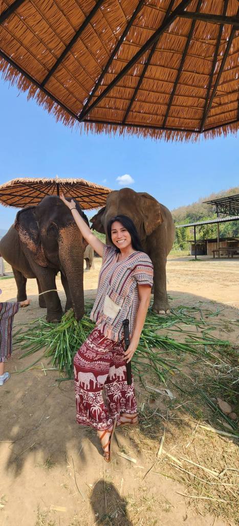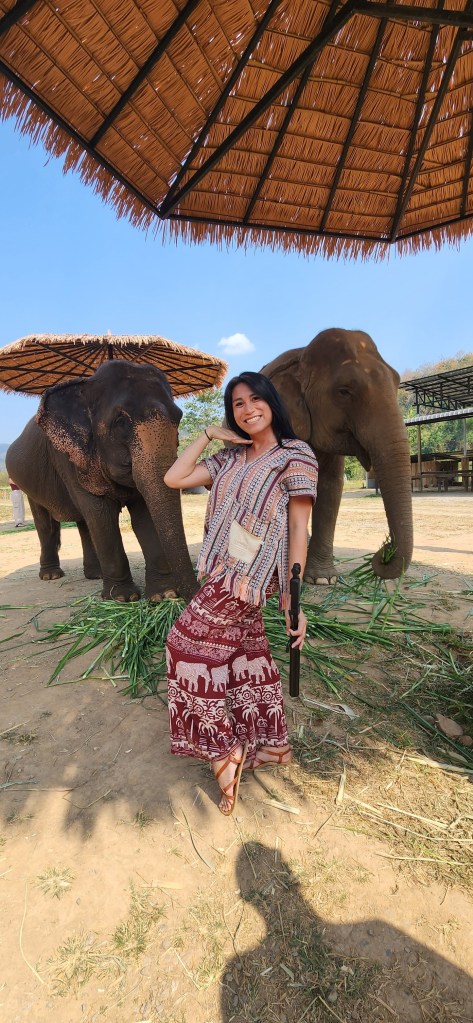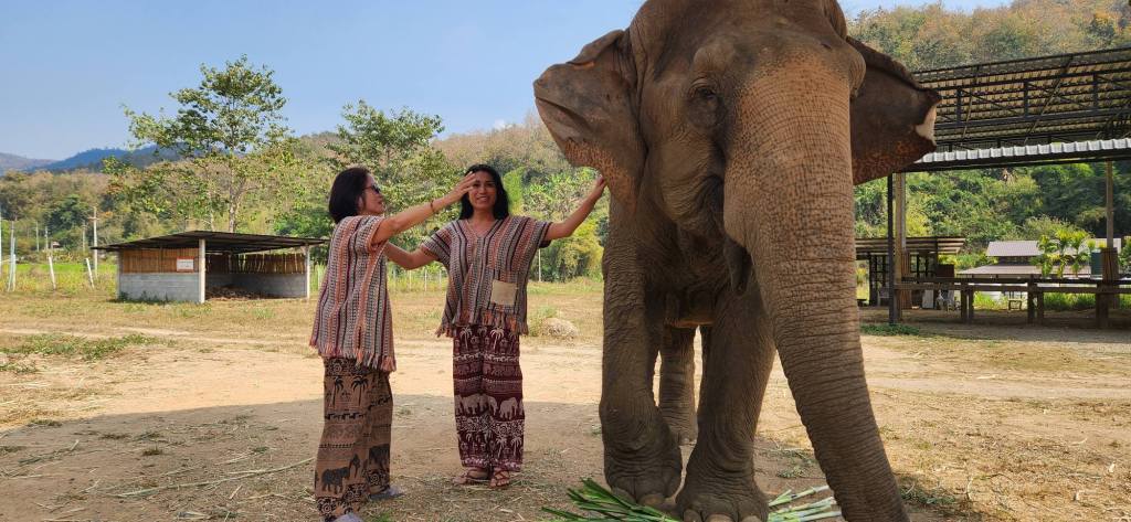 We were given traditional tops to wear and briefed on safety and elephant care. The sanctuary, founded in 2014, rescues elephants from riding camps, logging operations, and entertainment industries. Now, across multiple locations in Thailand, they care for over a hundred elephants — giving them space, food, and dignity.